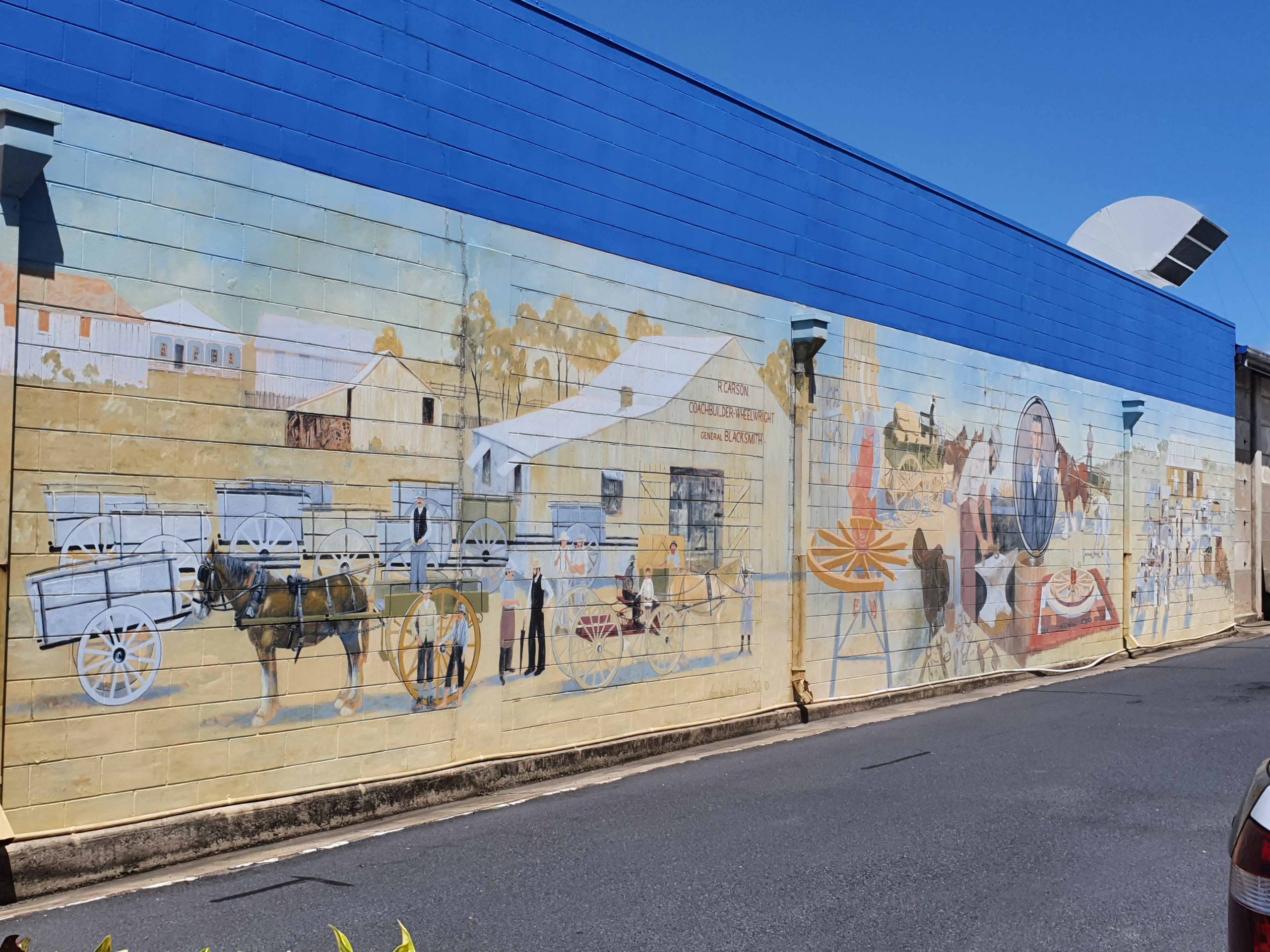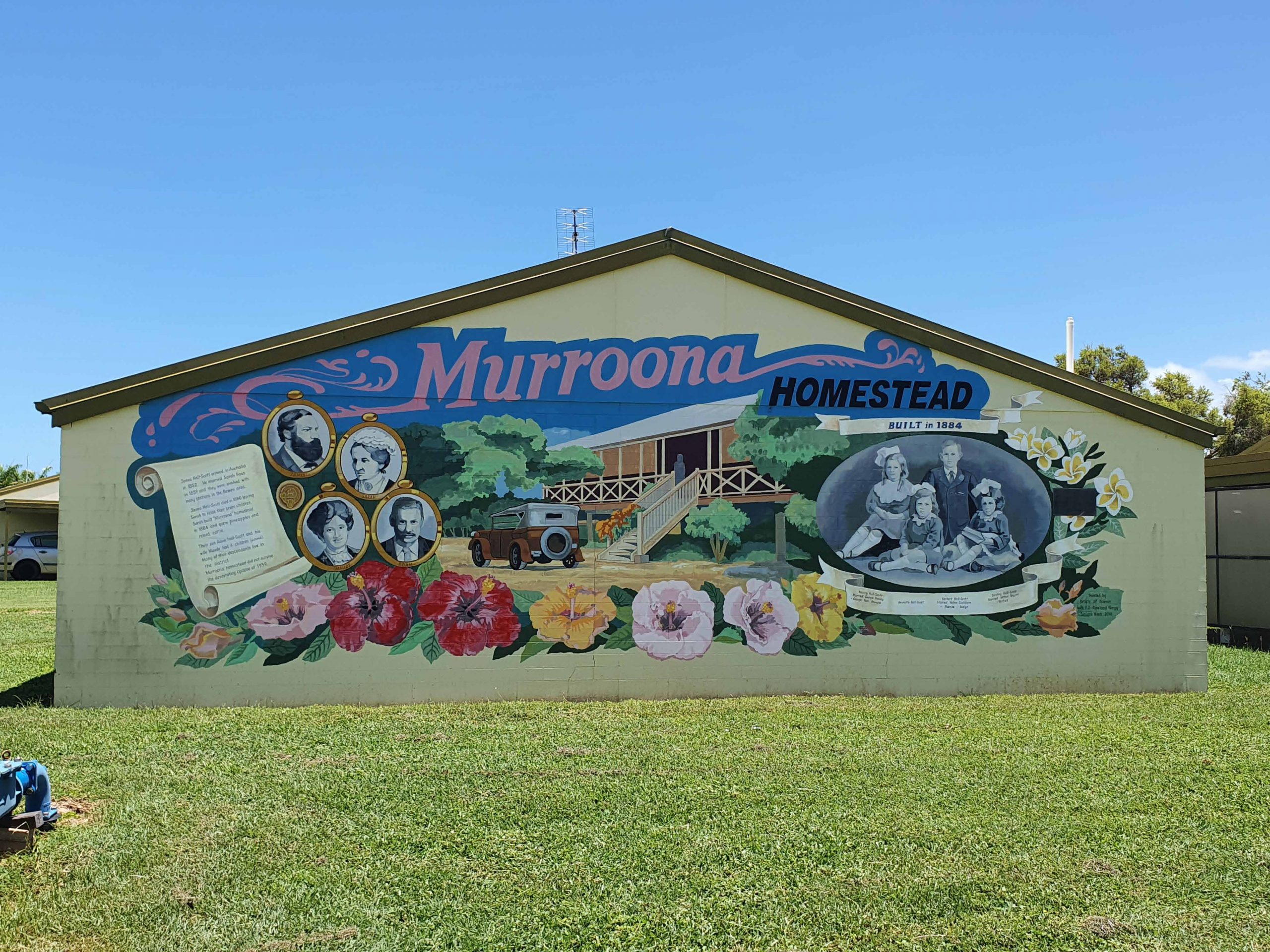 The first of Bowen’s 27 Murals was painted in 1988. The idea behind the murals belonged to a former Bowen resident (name not found). She came up with the idea on her visit to Chemainus in Canada, where the town’s historical past was shown in wall murals.