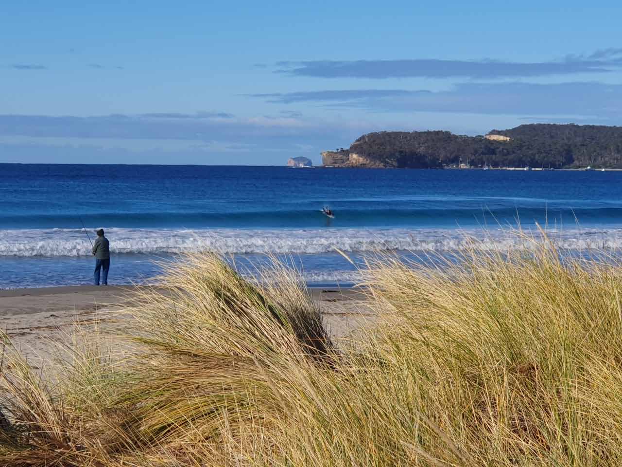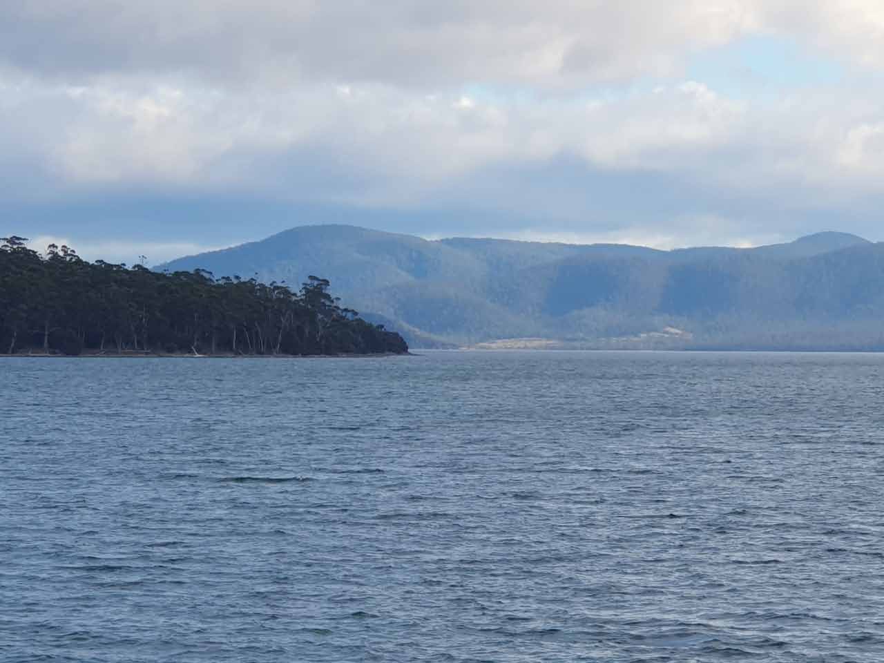 When anchoring at Eaglehawk Neck, we were greeted by two dolphins, who continued to visit us during our stay, and it was great to watch them swimming around.