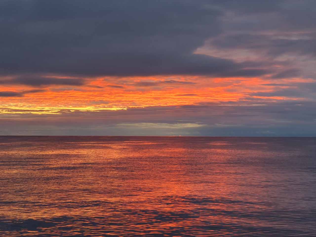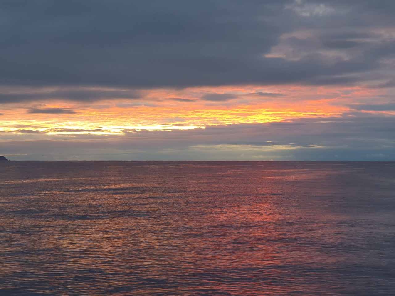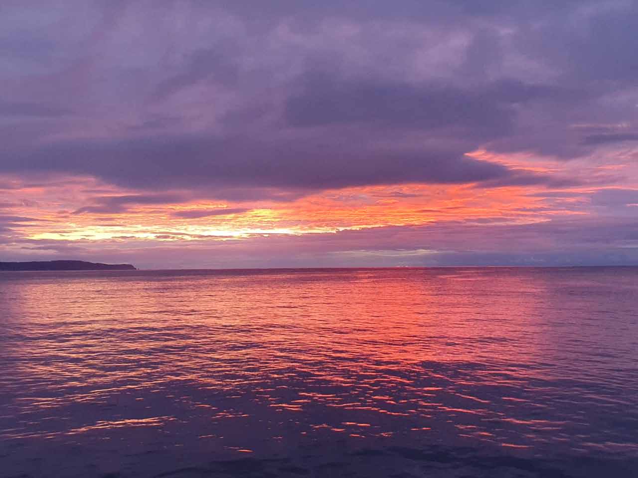 We used the flopper stoppers here to dampen the roll caused by swell wrapping around the point. The sun came out on our second day there and we had a pretty sunset.