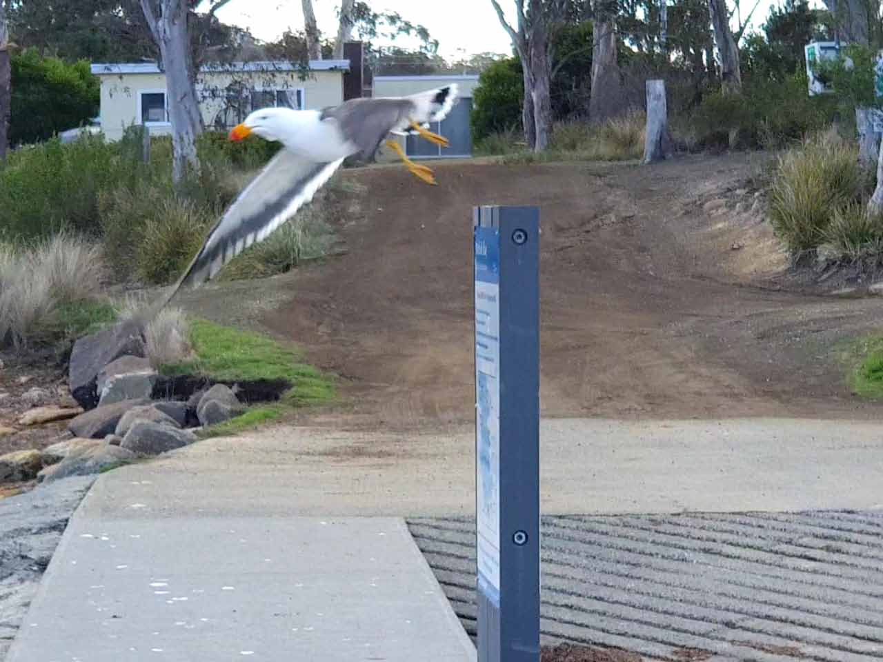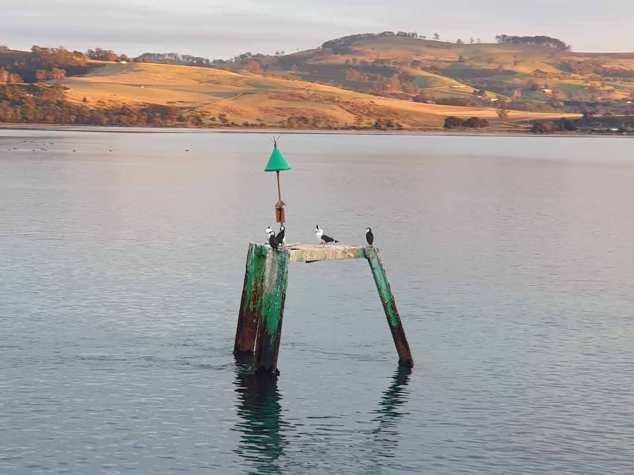 There’s a problem with seagulls at the dock, masses of them, and TasPorts and have been trialling a sprinkler system. They go off for 2-3 minutes from about 3:30pm, hourly until about 6:30am. The signage may not be as visible as it could be – we saw a few people surprised by the sprinklers! Also, on some of the really cold mornings, ice formed on the dock, as a result of the sprinklers. This confirms a known adage – all problems are caused by change!